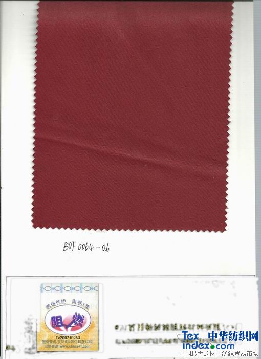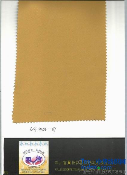 我公司采用阻燃劑單體與聚酯單體共聚生成改性阻燃聚酯切片,再經紡絲、紡紗、織造等工藝生產出磷系永久阻燃滌綸機織或針織織物,其阻燃性能達到國家GB20286-2006“阻燃1級”標準。產品阻燃性永久不丟失,且染色性能良好,燃燒時低煙無毒,屬于不含鹵素的環(huán)保型阻燃織物,與普通織物一樣手感柔軟,美觀,有較好的抗靜電性。