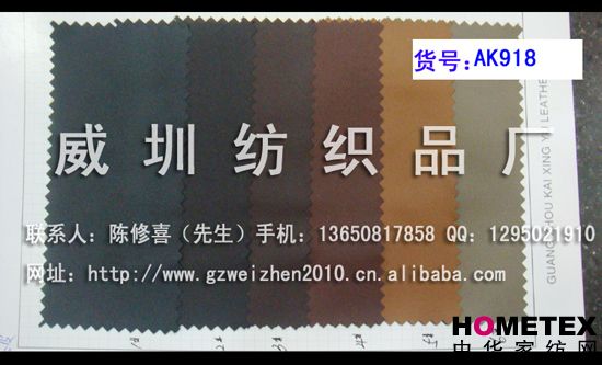 幅寬:140 別名:AK918 厚度:0.8 主要用途:鞋、箱包、服裝、手套 品種:PU革 貨號:AK918 品種:PU革 貨號:AK918 ============================================================= 以上產品全部現貨供應,可隨時提供樣布卡和現貨,隨時發貨。所有產品全部是廠家直銷價,我們承諾:以超低利潤營銷,我們只求銷售量。為保證您的利益,我司建議您在采購前先確認我們的品質樣與顏色樣后再拿大貨,期待與您的真誠合作。因產品種類較多,具體參考未盡詳盡,如有需要,請您與我們聯系。 瑞豐紡織(中大旗艦店)坐落于國內最大的紡織面料產業中心—廣州中大,是一家專業銷售面料的廠家直銷商。主要經營產品有:全棉凈色、仿記憶絲面料、全棉(TC)色織等,面料品種花達上千余種,所有產品全部現貨經營。 我們面料的品質來源于:1、采用國內外優質的原材料;2、使用精良的生產工藝和設備;3、完善的生產質量管理體系。我們具有開發和創新品種的強烈意識和優越條件,并根據客戶需求與市場變化時時推出潮流面料。憑著多年的專業行業經驗,根據客戶需求,不論客戶在全國任何地方,只要提供小樣,就可在一兩天時間內輕松獲得所需面料的信息。 批發說明供應商支持混批 。 ============================================================= 有意請加QQ:1295021910或電話聯系。 公司名稱:威圳紡織品廠 聯系人:陳修喜先生 手機:13650817858 網址:http://www.gzweizhen2010.cn.alibaba.com =============================================================