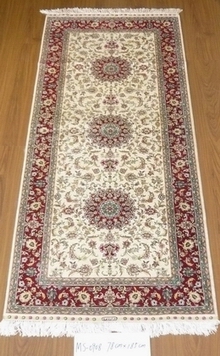 手工絲毯:采用優(yōu)質(zhì)桑蠶絲經(jīng)純手工打結(jié)編織而成,一條絲毯要經(jīng)過圖案設(shè)計、絡(luò)絲、染色、手工編織、平毛、水洗、整修等工序才能完成,成為獨一無二的手工藝品。地毯圖案設(shè)計精美逼真,色彩柔和淡雅,編織細(xì)密,品質(zhì)好的地毯每平方米要手工打結(jié)528萬次,一條60cm x 90cm規(guī)格的絲毯,需要一名熟練工人近三年的時間才能編織完成。高品質(zhì)的手工絲毯均產(chǎn)自中國地毯之鄉(xiāng)——河南省鎮(zhèn)平縣,它不僅很好地融合了東西方文化,具有很高的藝術(shù)鑒賞價值,而且能增值保值,具有很高的收藏價值。2008年6月5日一條170cmx230cm的手工波斯絲毯在美國藝術(shù)品拍賣會上以4,450,000美元的高價售出。擁有一條高品質(zhì)的手工絲毯,不僅體現(xiàn)了主人的文化品位,而且彰顯主人尊崇的社會地位。