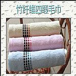 用途:毛巾 工藝類型:提花 型號:LJP5236 規格:34*76/110g/ 成份:70%竹30%棉